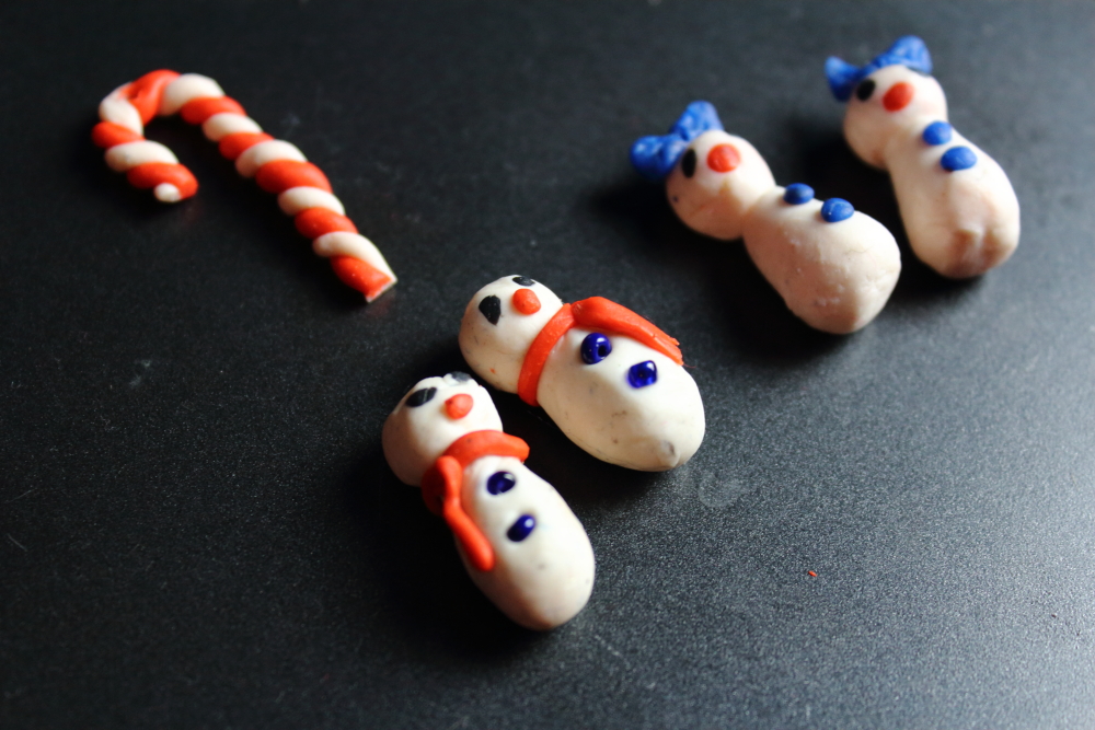 2. Modelina farbuje – przynajmniej ta, którą ja miałam. W efekcie nasze białe bałwanki dotknięte rękami, które zagniatały inne kolory modeliny, szybko łapały inny odcień. Może w przypadku modeliny kolorowej nie jest to tak widoczne i dokuczliwe, ale biała modelina wymaga jednak sporej ostrożności.