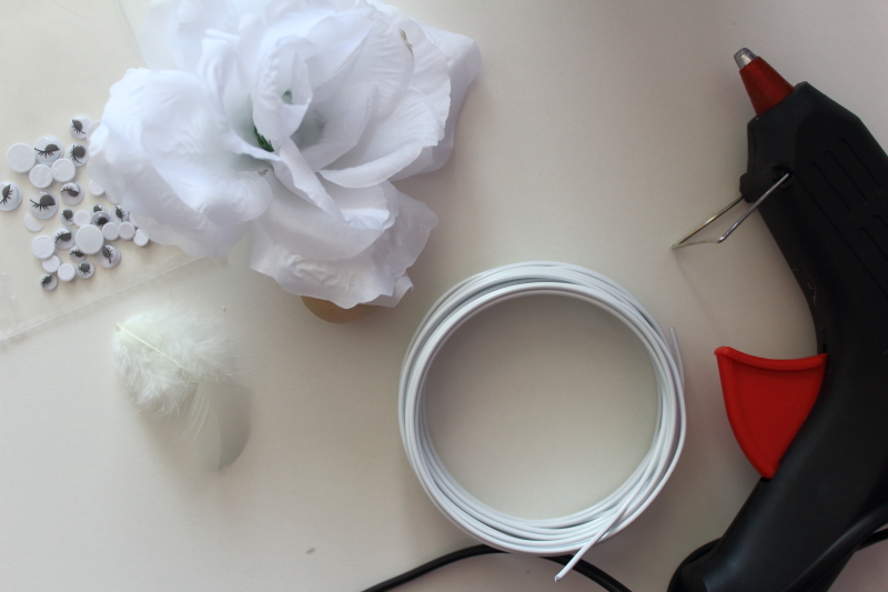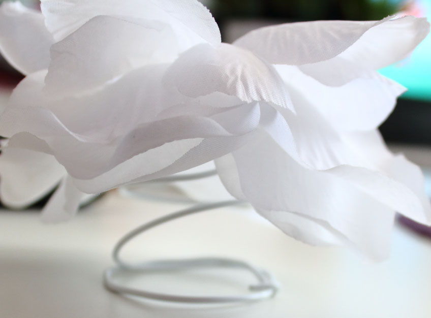 - dwie główki białych sztucznych róż