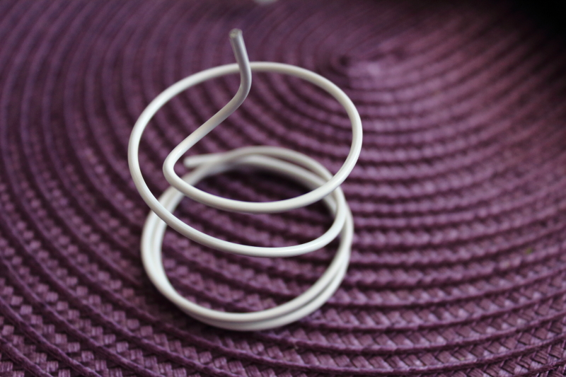 Biały drut skręcamy w spiralkę i robimy z niego stojaczek dla aniołka.
