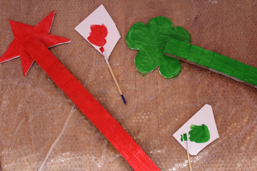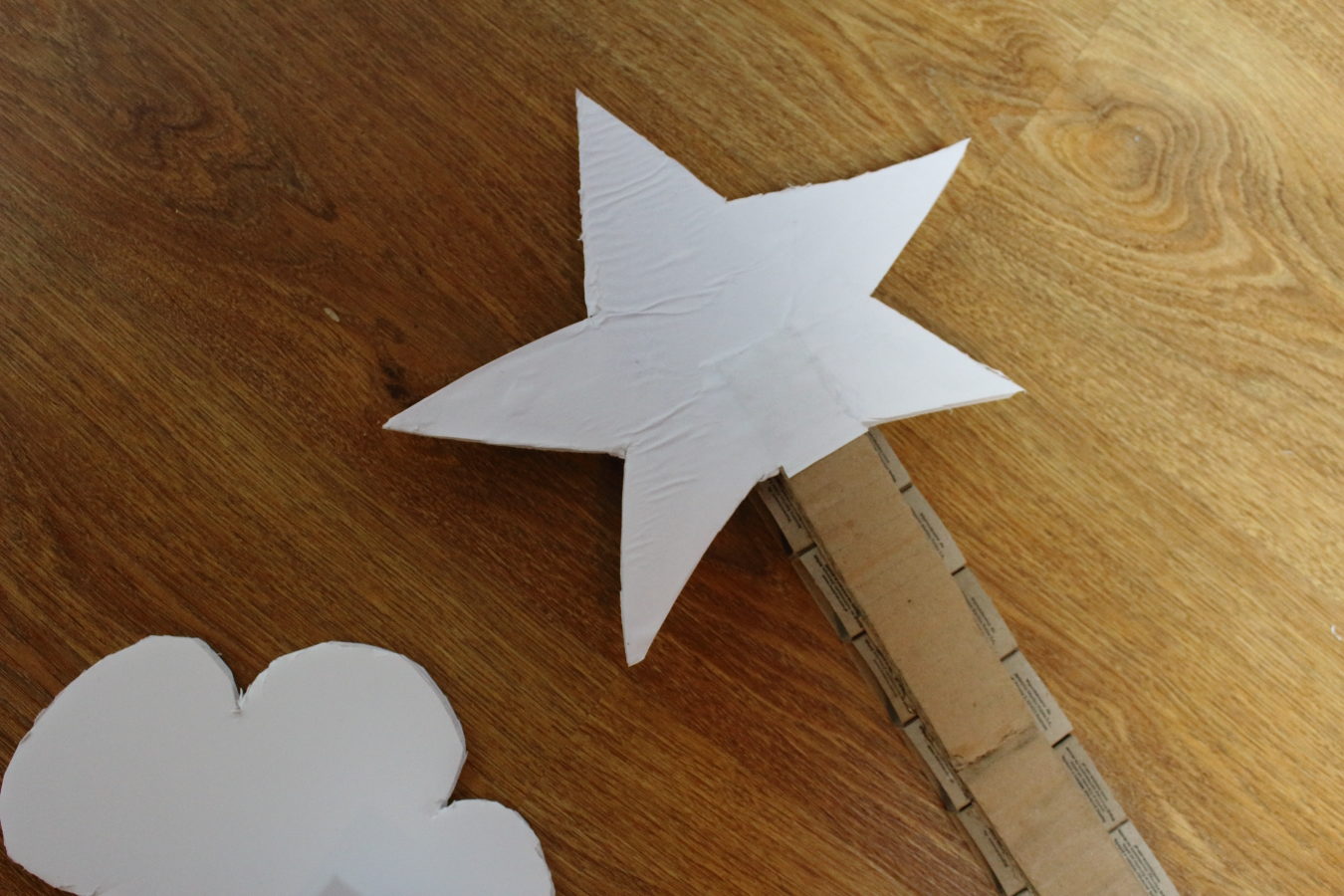 Z pianki modelarskiej wycinamy kształt, którym chcemy udekorować nasz kalendarz. W wersji adwentowej wycięłam gwiazdę, w wersji wiosennej kwiatka. Wewnętrzną krawędź smarujemy klejem i przyklejamy do listewki. Aby wzmocnić konstrukcję podklejamy ją od spodu papierem.
