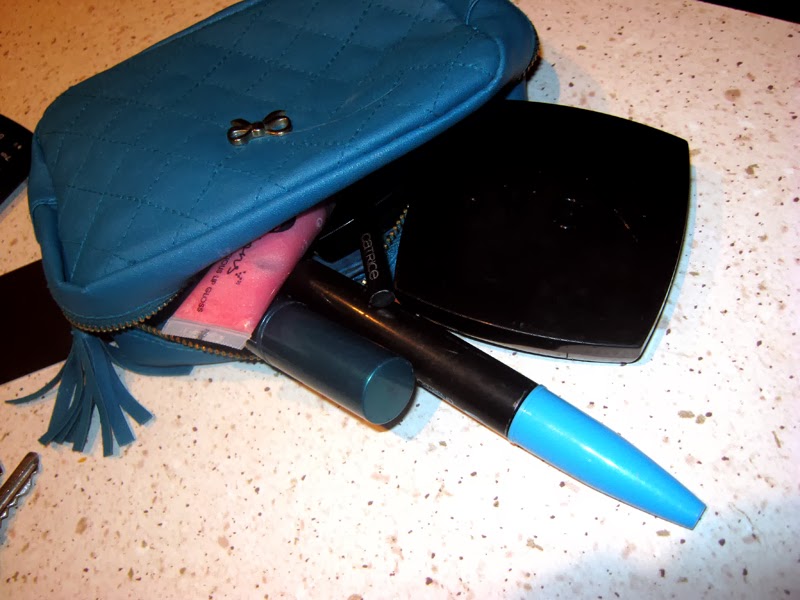 Podobnie jak większość kobiet, w mojej torebce znajdzie się też kosmetyczka. Noszę w niej puder, róż, dwa tusze do rzęs – brązowy i czarny oraz błyszczyk. Zwykle noszę też lusterko, ale mój obecny puder ma je w zestawie, więc mogę zrezygnować z jednego „balastu”.