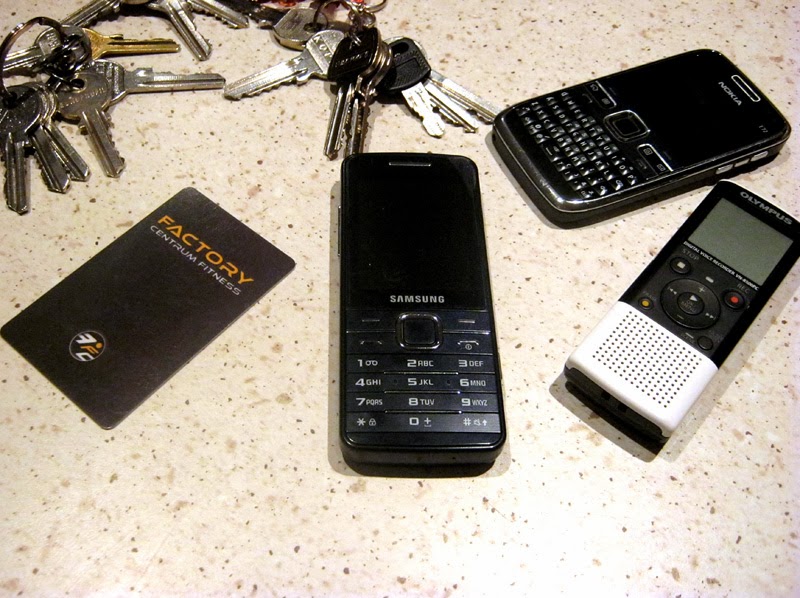 Z racji obowiązków zawodowych jest też dyktafon, bo nigdy nie wiadomo, kiedy będzie warto coś nagrać oraz aparat fotograficzny.