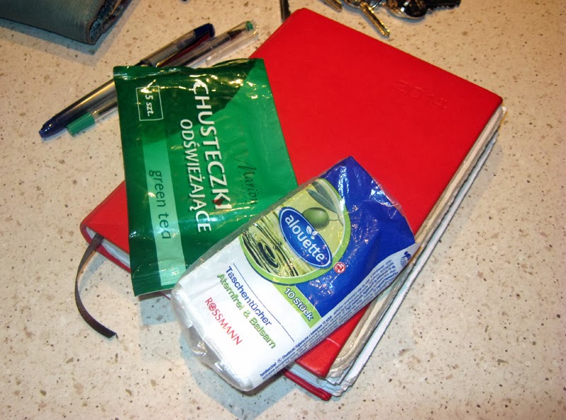 W torebce noszę też chusteczki – tradycyjne higieniczne i nawilżane.