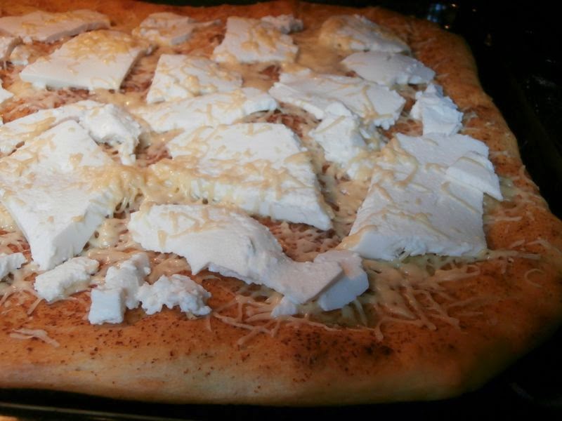 Przepis na zdrowe ciasto do pizzy podawałam Wam już tutaj, więc jak ktoś nie wie, jak je wykonać odsyłam do źródła. W przypadku chlebka czosnkowego nie kładziemy jednak na pizzę sosu pomidorowego, a smarujemy ciasto oliwą z dodatkiem mielonego czosnku – ja daję 2 łyżki oliwy i 2 łyżeczki czosnku. Ciasto pieczemy tak długo, aż zacznie się delikatnie rumienić.